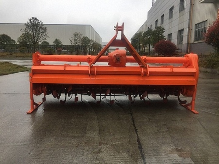 1GQ-180旋耕机为履带拖拉机及轮式拖拉机配套农具,是一种耕耙联合作业的整地机具,可完成水田旋耕、打浆,平整,旱地碎土等农田、烟地、果园作业。旋耕机采用侧边齿传动,耕作无盲区,拥有自主知识产权和国家专利。整机外观采用本公司具有外观专利的旋耕机(外观专利2013305545294)。为我省烟草补贴农机传统产品,深受烟草部门、烟农、烟草专业合作社及广大用户欢迎。 配套于拖拉机后,利用刀轴上的刀片旋转和机组前进运动,对未耕地或已耕地的田地表面进行碎土作业,作业效率高,碎土能力强,耕后地表平整,耕作深度一致,是一种理想的整地机具。广泛适用于各种水旱地的耕耙整地作业。 1GQ-180型旋耕机,采用最新设计,旋耕时能将拖拉机左右轮迹全部覆盖,一次作业即能使土壤细碎,土、肥掺和均匀,地面平整,达到旱地播种或水田栽插的要求,有利于争取农时,提高工效,并能充分利用拖拉机的功率,满足现代农艺需要。